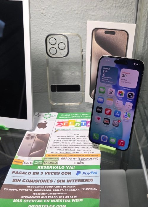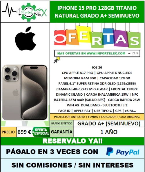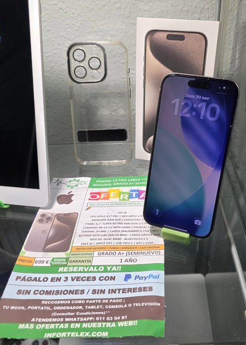 iPhone 15 PRO 128gb Titano Natural Seminuevo Grado A+